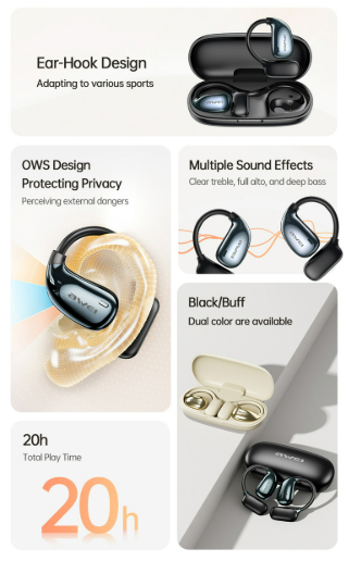 AWEI TP57 ENC Wireless Earbuds, Bluetooth V5.4, 4Smart Touch, H Call Time, 5H Play Time, 2,402-2,480 MHz Bluetooth Frequency, IPX6 Waterproof Rate, 20Hz-20kHz Frequency Response