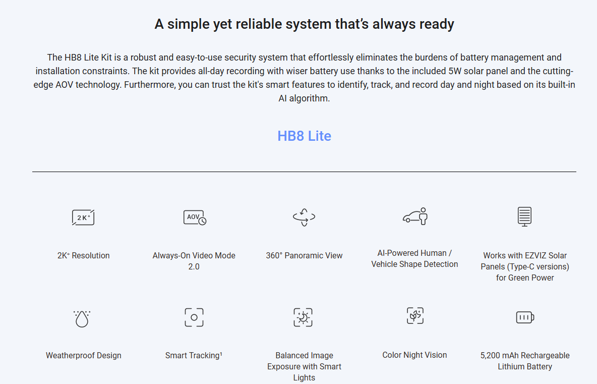 • EZVIZ HB8 Lite Battery-Powered Pan Bundle with Solar Panel