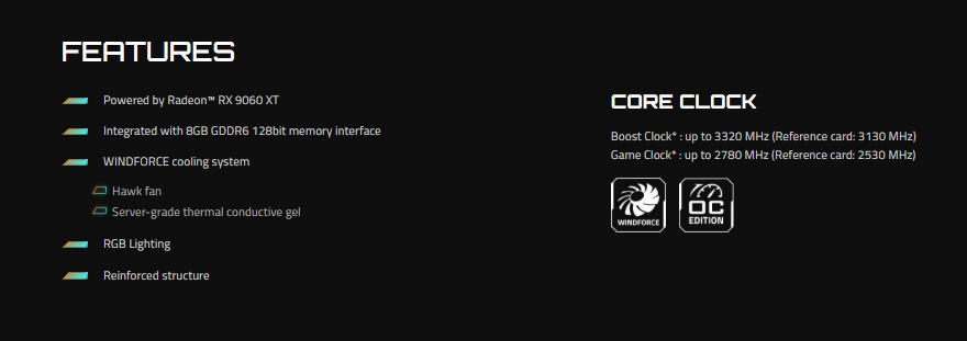 • GIGABYTE Radeon RX 9060 XT Gaming OC 8G Graphics Card, PCIe 5.0, 8GB GDDR6, GV-R9060XTGAMING OC-8GD Video Card