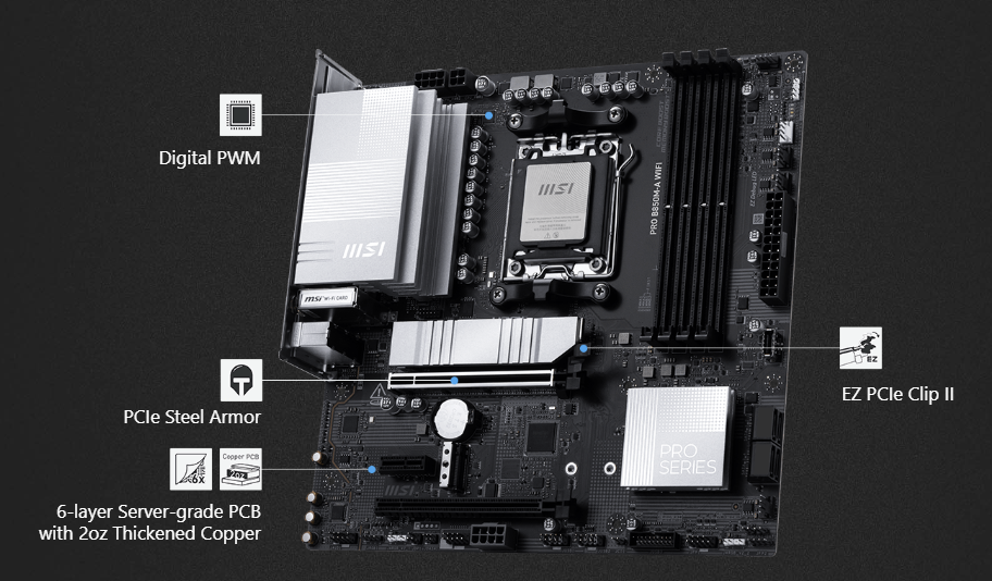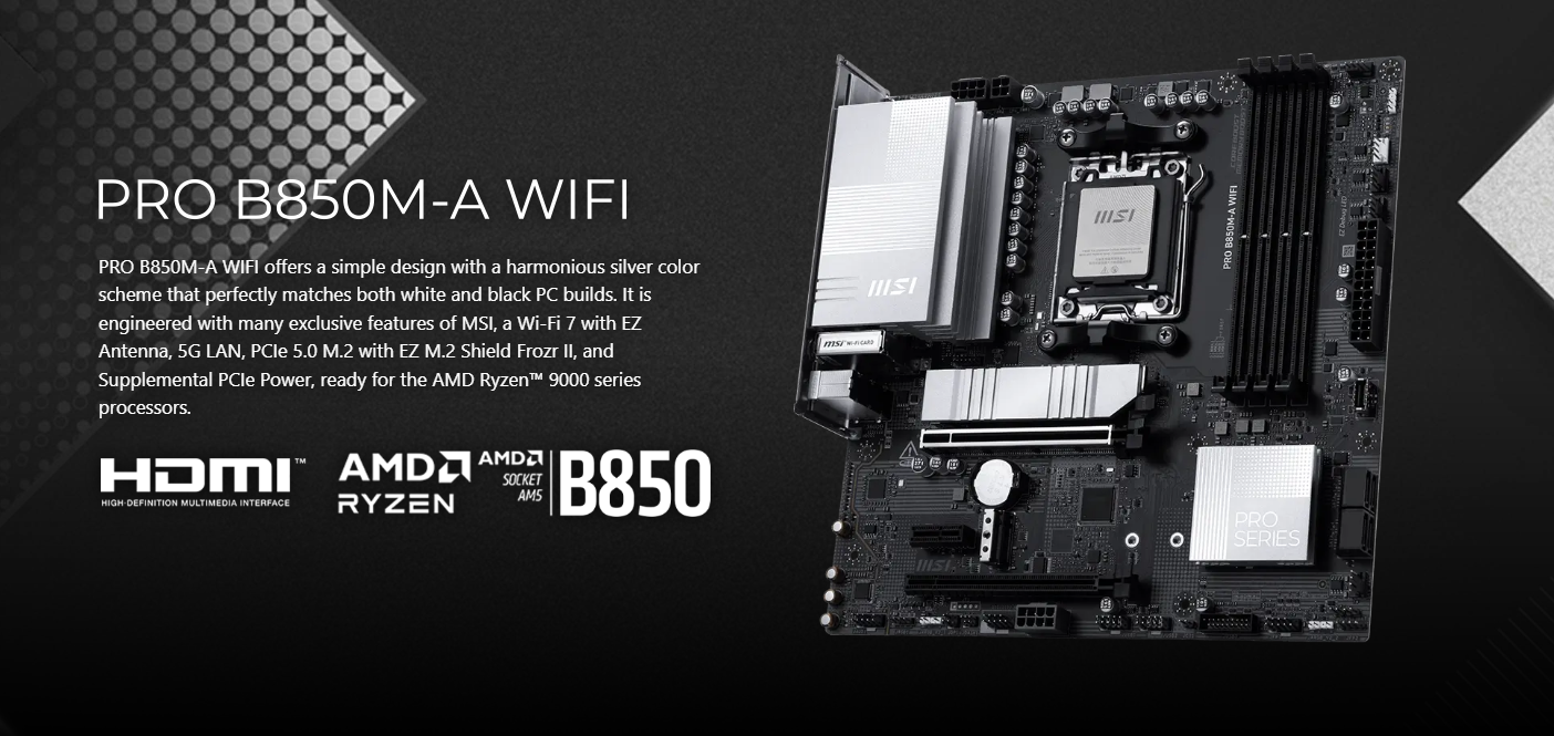 The MSI PRO X870-P WiFi ProSeries motherboard is designed to support AMD's latest Ryzen 9000, 8000, and 7000 series processors on the AM5 socket. It offers a