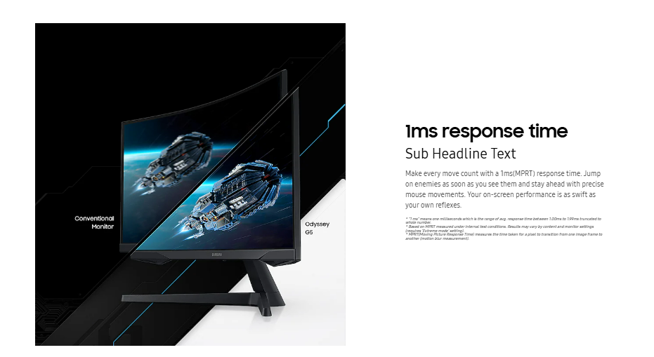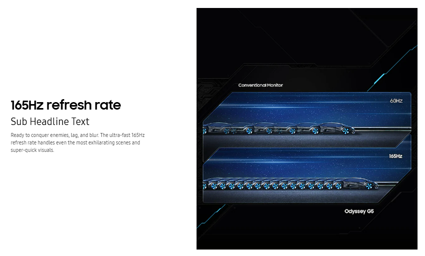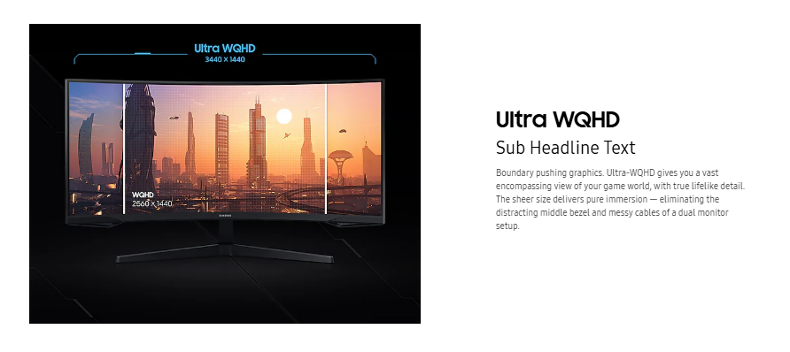 • SAMSUNG 34' Odyssey G5 Ultra-Wide Gaming Monitor with 1000R Curved Screen, 165Hz, 1ms, FreeSync Premium, WQHD, Black