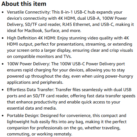 Massive Expansion: Get way more out of your laptop’s USB-C port, with 4K@30Hz HDMI, SD card connectivity, USB-A / USB-C...