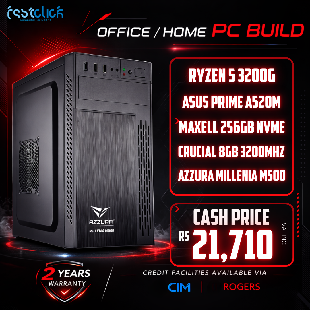 AMD Ryzen 5 3200G Desktop PC – ASUS PRIME A520M Motherboard, Crucial 8GB 3200MHz DDR4 RAM, Maxell 256GB NVMe SSD, Azzura Millenia M500 Case – Budget Home & Office Build