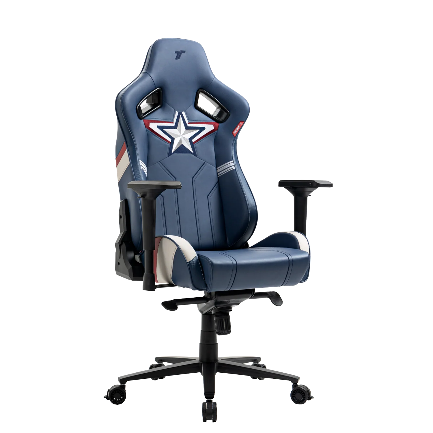 The Surge X Captain America Edition is seamlessly created through the perfect combination of the frame, foam and upholstery. Traditionally, foam is applied to the chair frame before it is dressed with the upholstery. While this process is simpler, it creates trivial creases and uneven surfaces which can affect your comfort experience. At TTRacing, compromising on quality is not an option. We combined our top-quality cold cure foam with our smooth carbon fiber PU leather before applying them onto the chair frame. This process results in impeccable fit between frame, foam and upholstery and eliminates even trivial creases. Bonded faux leather is also more practical (as compared to hot real leather chairs) and provides the best value for quality.